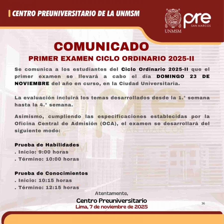 « COMUNICADO - CICLO ORDINARIO 2025-II